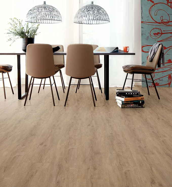 Mit Strong SPC profitieren Sie von der Kombination aus bewährten Vinylböden und innovativen SPC-Eigenschaften. Diese neue und verbesserte Version der schwimmend verlegten Bodenbeläge weist alle Vorteile traditioneller Luxus-Vinyl-Bodenfliesen auf, bietet aber zusätzlich auch die Vorteile eines SPC-Bodens. STRONG SPC ist nämlich starr und ultrastabil, so dass die Verlegung jetzt auch auf Flächen von über 400m² (20x20m) ohne Dehnungsfugen möglich ist!