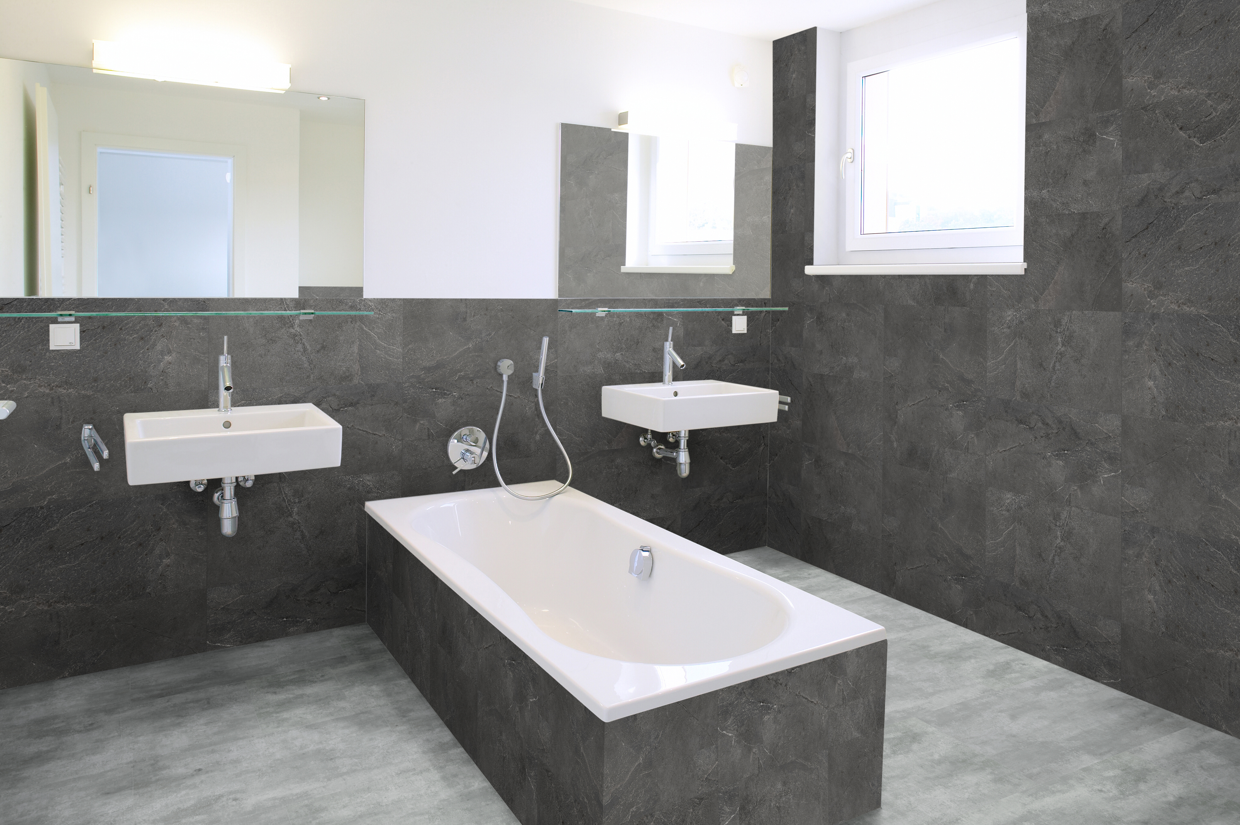 Dank des stabilen, wasserdichten Klicksystems der neuesten Generation ist die Montage kinderleicht: direkt auf alte Fliesen, Beton, Rigips oder OSB-Platten. Die Paneele sind 100 % wasserfest, pflegeleicht und perfekt für Nass- und Feuchträume geeignet. Mit nur 3,7 mm Aufbauhöhe und einfachem Zuschnitt mit dem Cuttermesser ist die Renovierung so einfach wie nie zuvor – ideal kombinierbar mit Vinylböden.